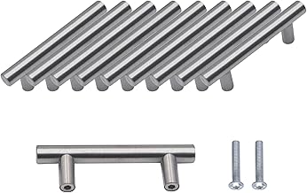 Hengda 10 x Acier Inoxydable Poignee de Meuble Cuisine Espacement des Trous de 160 mm, Acier Brossé Poignée en T pour Porte d'armoire Poignées de Porte de Cuisine