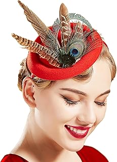 Coucoland Chapeau bibi à plumes pour femme - Style années 1920 - Serre-tête élégant avec plumes de paon - Pour cocktail, thé, fête - Gatsby - Accessoire de déguisement